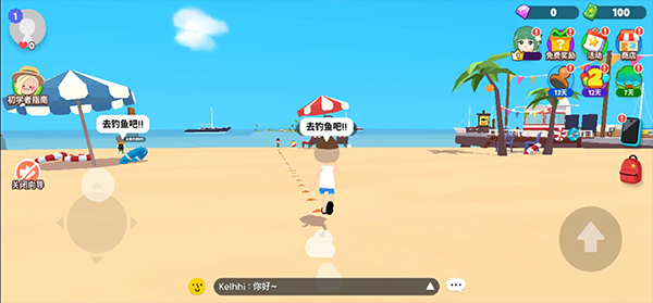 4、根据任务提示来到沙滩角色旁边,我们将获得一个鱼竿;