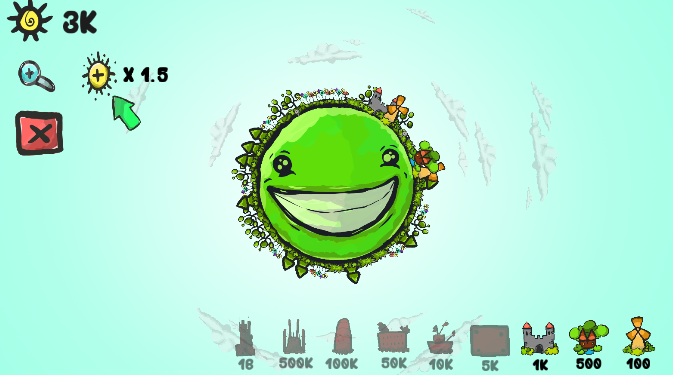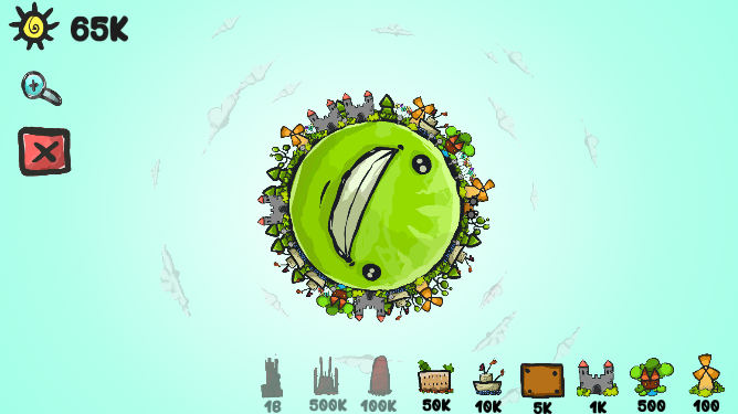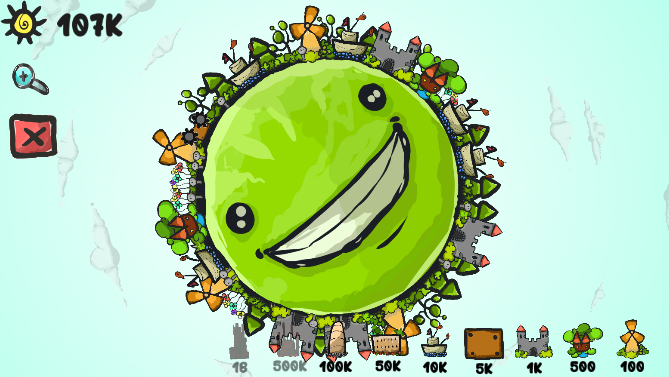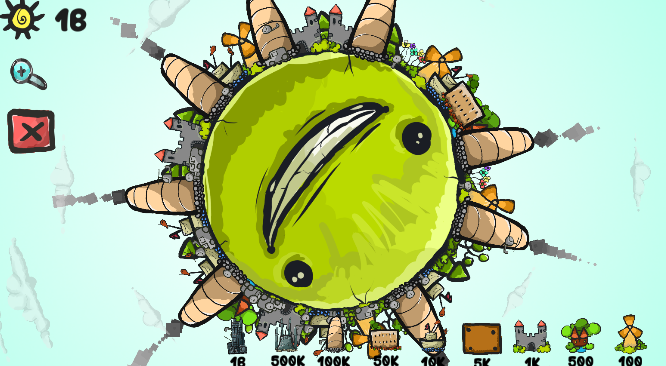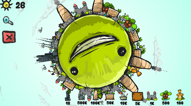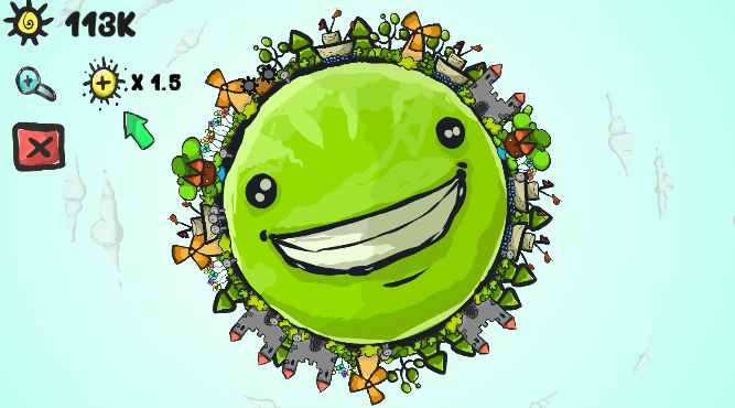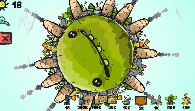 地球 进化 模拟器 ,一个很有创意的小游戏。玩家将在旋转的地球上,不断放置物品,注意合理分配物品位置,过多的建筑垃圾等将导致地球运转困难。