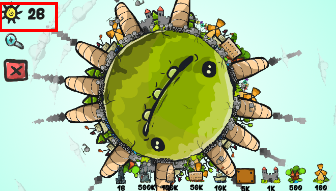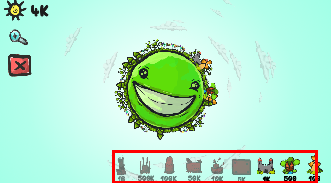 注意右下角的物品,点击放入地球表面,会增加分数