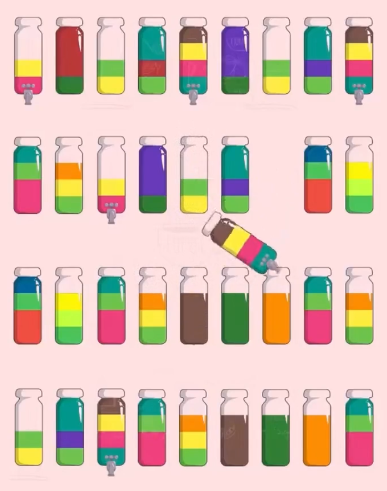 一款玩家需要仔细地对不同颜色的水进行排序的休闲益智游戏。在水排序游戏中,玩家要进行细致的观察,将玻璃杯中的彩色水进行有效分离,避免混入其他颜色,使水井然有序。在水排序游戏中,玩家将面对多种布局挑战,需要敏锐的观察能力来区分各种颜色。