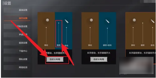 进入操作设置页面,点击“自定义布局”来调整瞄准位置,从而设置准星。