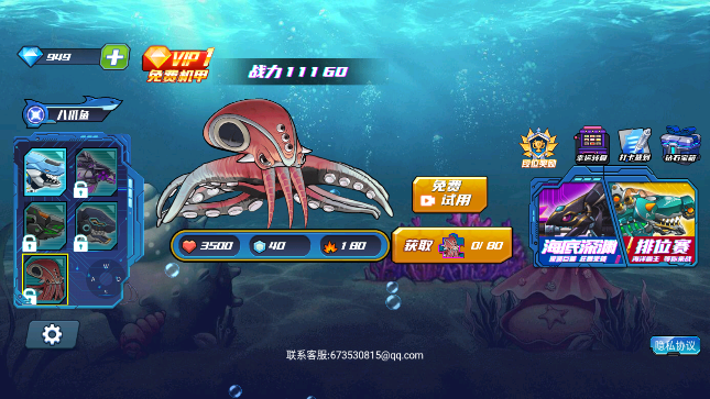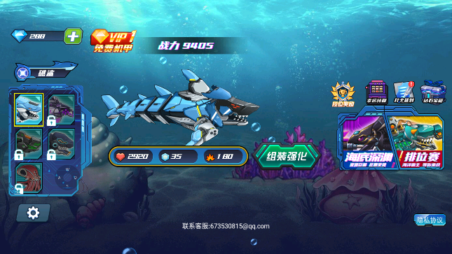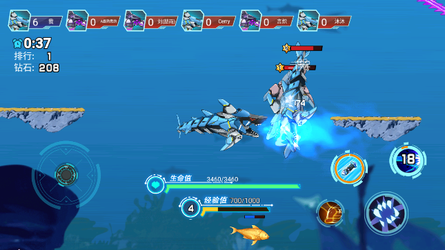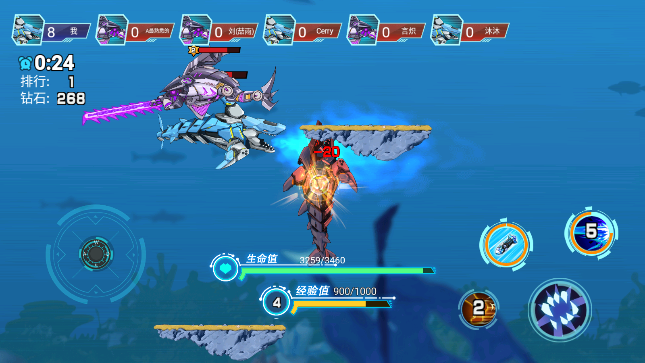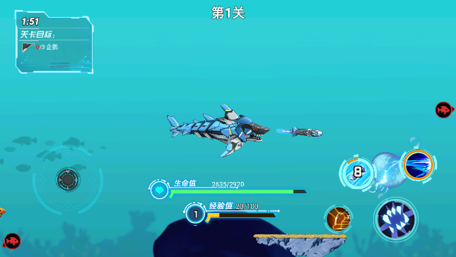 2、 收集 宝藏和道具,提升机械鲨鱼等级和能力;