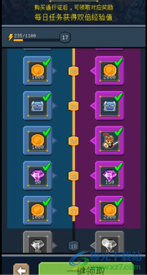 2、同时游戏中还有这通行证功能,通过不断的游玩获得大量的游戏奖励。