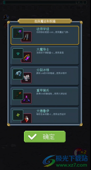 4、进入关卡之后玩家能够在所有的魔法和祝福之中任选其一。