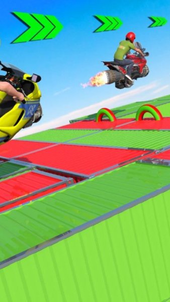 2、操作感十足的特技驾驭体会,在疯狂的赛道中展示你的机甲摩托车特技表演;