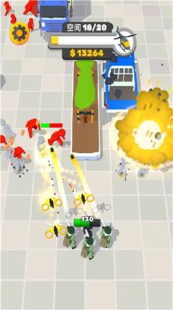 当你被敌人围攻时一定要当心一些才行,运用各种机枪直接对着敌人们扫射,这样就能快速的击败它们获取最终的成功!