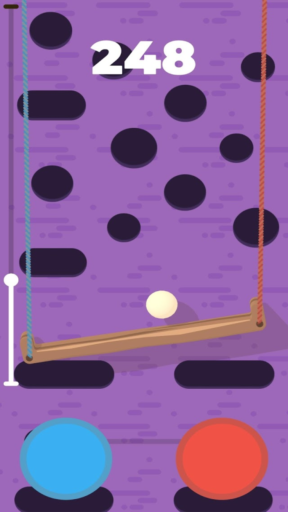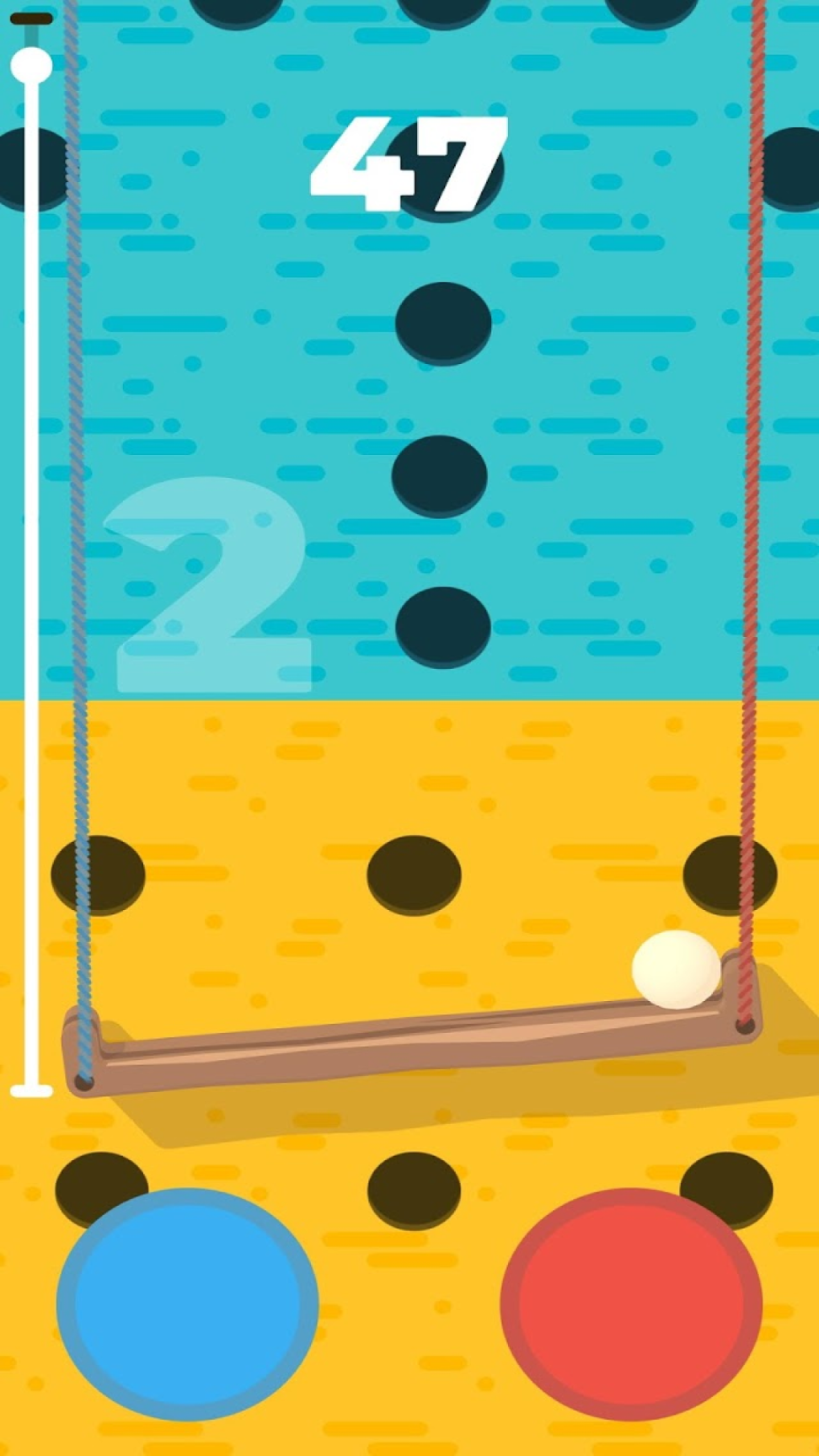 不要让球落入洞中,不要让小球掉进洞里。在游戏中,玩家会把一个小球放在一块两端上下摆动的木板上。玩家需要通过调整红蓝两根绳子的高低来维持木板上圆球的平衡。尽力保持小球的平衡,可以让人放松心情。感兴趣的话就去下载试试吧。