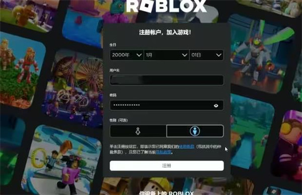 1、打开游戏之后按照及时注册一个账号,按照提示填写信息就可以顺利注册游戏;