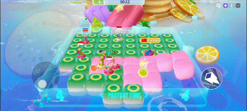 4、游戏过程中,时不时会有一些随机的方块从天上掉下,替换原有的方块;或是遭到飘过来的泳圈的撞击导致一些小方块随机消失;或是部分舞台区域发生对折。