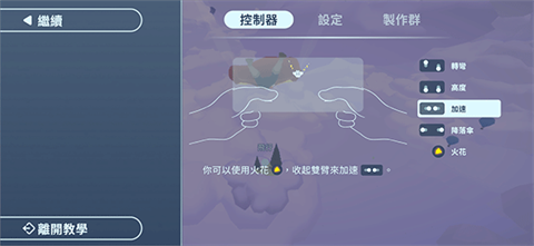 3、加速:你可以使用火花收起双臂来加速,将左右大拇指同时向内滑动来加速。