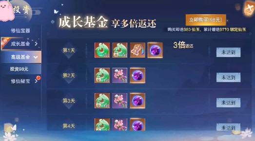 充值比例为1:500,直升VIP10,登录即赠送5万元红包,VIP礼包内含专属SSSR仙侠法宝!