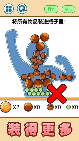 2.开始后,玩家需要按要求将桌面坚果放入瓶中。