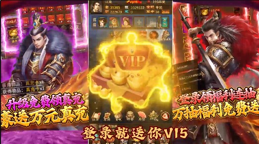 3. 上线福利:赠送VIP15,2888888银币,28888金币,轻松领先他人!