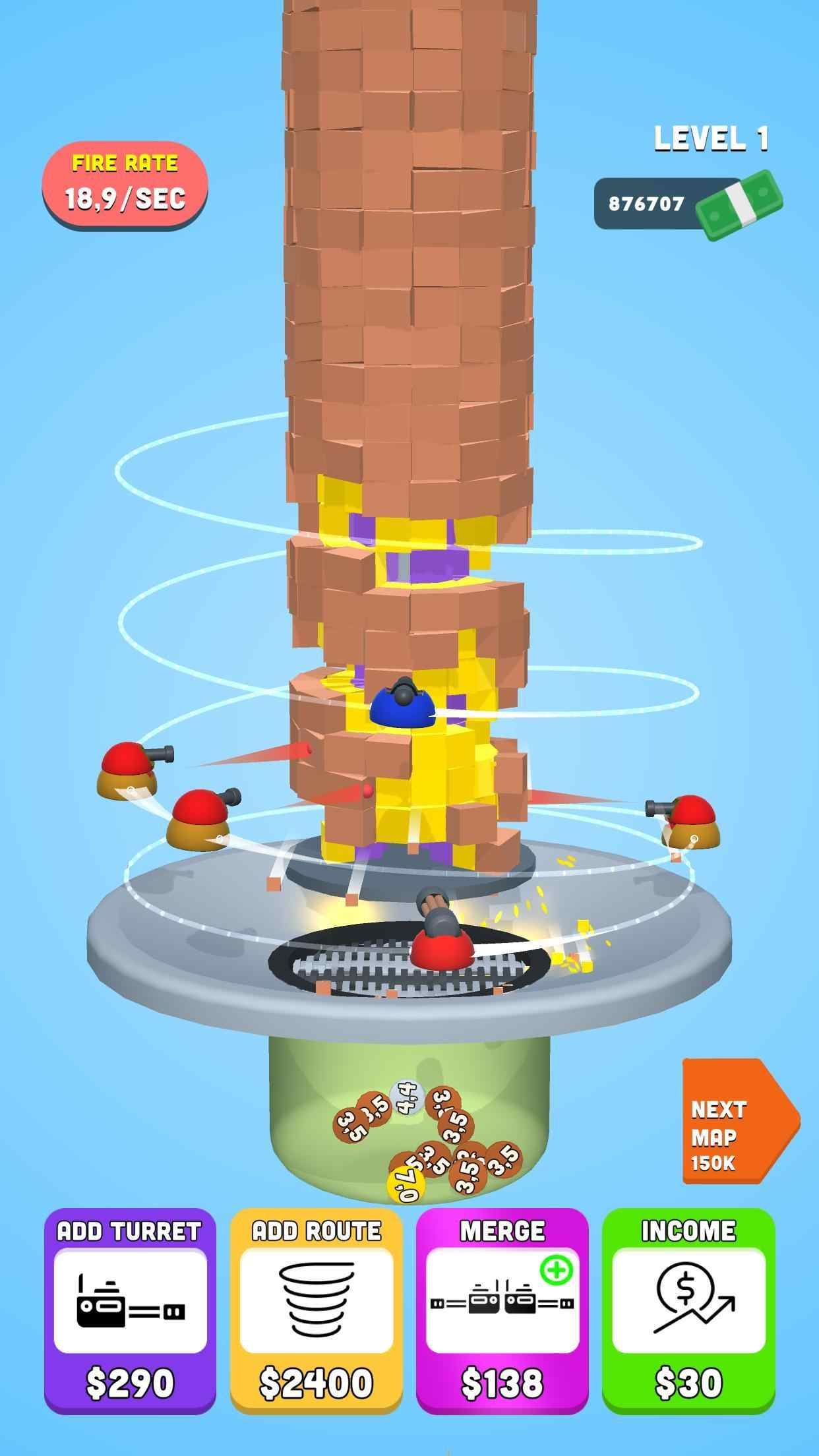 打击炮塔以摧毁对面的塔楼,看看你最快的破坏速度。你可以不断升级强化你的炮塔,射击技巧也非常关键。