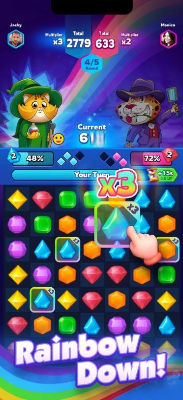 2、使用多种特殊宝石,例如炸弹、彩虹宝石等,使游戏变得更加有趣。