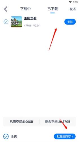 2、进入下载页面,长按选中需要删除的游戏,点击【删除】选项即可。
