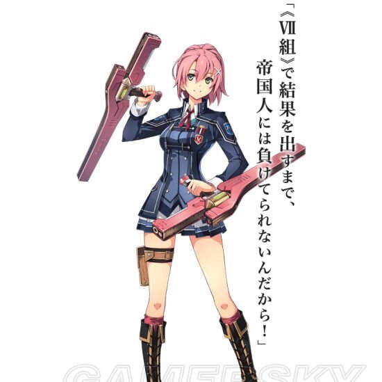 人物介绍:旧克洛斯贝尔出身的充满正义感的少女。憧憬着解决了不少大事件的克洛斯贝尔警察“特别任务支援科”就读了警察学校,但因为被埃雷波尼亚帝国占领了,她的梦想化作了泡影。她接受了某个人的意见后,为了确认帝国到底是不是真正的“侵略国家”,以克洛斯贝尔州市民的身份入学第二分校。