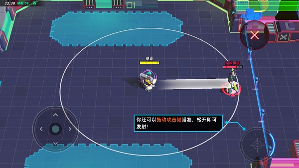 在遭遇到对手时,点击右下角的攻击按钮。另外,您还可以拖动攻击按键进行瞄准,松手后便可射击。