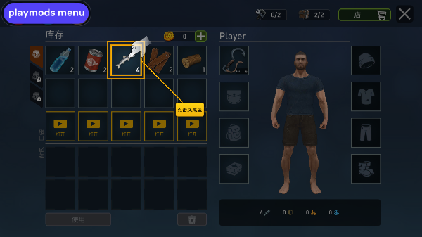 1、进入游戏生存模式,首先需要注意的是收集各种物资,看到海面上漂浮的箱子就点击右下角的钩子对准它,将其从水中拉起来。