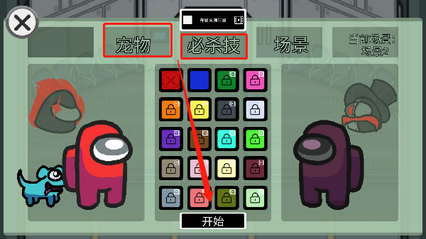 在游戏启动前,玩家可以自行选择携带的宠物和必杀技。游戏场景默认随机生成,但玩家也可以手动设置并锁定特定地图。