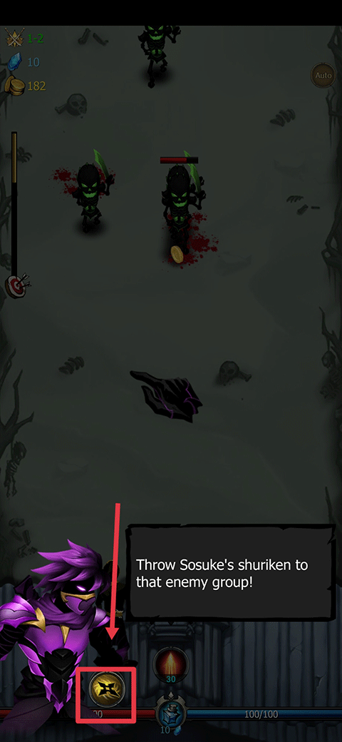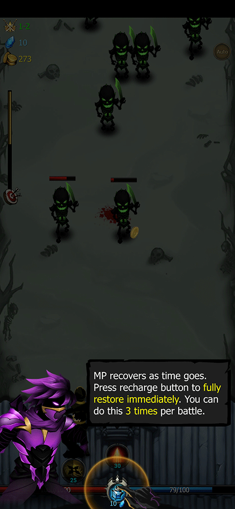 2. 战斗开启时,你既能够点击屏幕来发动攻击,也能够点击右上角的“auto”来设置自动射击模式。
