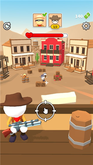 西部狙击手,一款特色鲜明的fps射击游戏,以3D引擎精心打造。荒野西部的卡通风格,搭配趣味满满的背景音效,一场美式复古枪战即将拉开帷幕!在游戏里,你将化身狂野史诗大西部中的牛仔,为守护小镇和平,消灭所有布娃娃强盗。在这里,你不仅能体验到五花八门的枪支武器,还能探索风格迥异的地图场景,迎接各种挑战。此外,每次完成任务,都能解锁全新装扮,助你真正成为一名出色的牛仔。