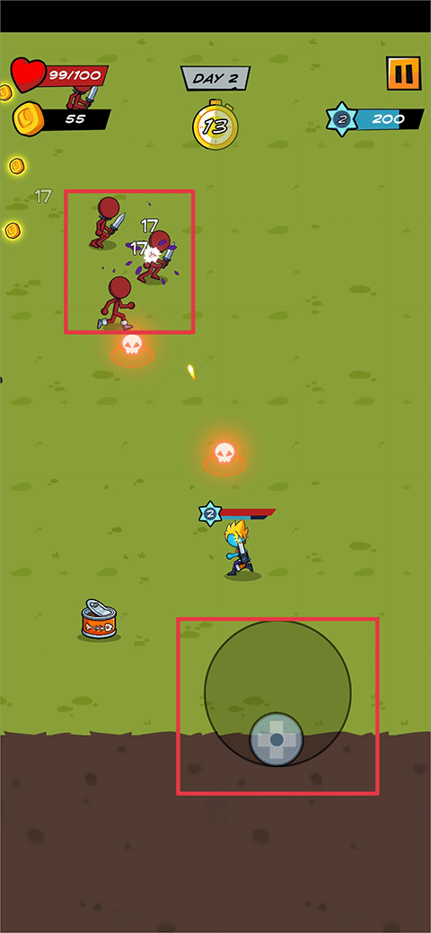 3、进入游戏后,利用下方轮盘来操控角色移动,持续走位,把地图上出现的敌人一一击杀。