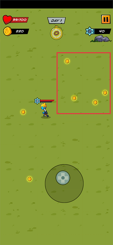 4、敌人被击杀后会化作金币,你既能够操控角色移动至金币所在位置进行收集,也能在倒计时结束后,等待系统自动收集金币。