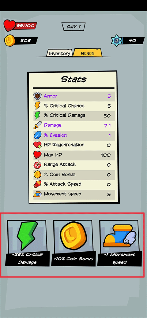5、倒计时结束战斗也将结束,然后你可以在统计数据界面下方中选择一个升级技能,如选择鞋子则可以为角色提升一定移动速度