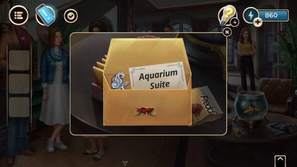 3、将水递给面前的女士,过剧情,然后打开紫衣女人手中的行李箱,进入房间,从桌上carla的请柬中找到钥匙。