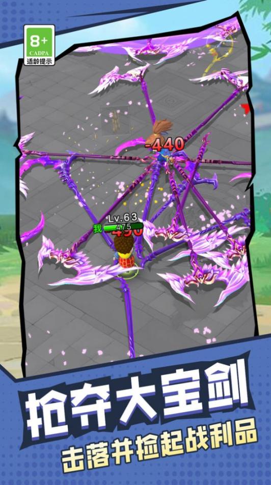 3、角色属性成长系统,根据策略来打造强大的角色。1、通过手指滑动来操控剑的旋转方向,灵活避开敌人的攻击。