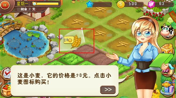 2、我们需要根据游戏的任务,来为农场进行建设,首先从购买小麦种植开始;