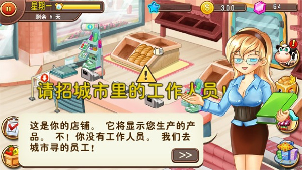 4、任务结束后即可解锁下一关,前往店铺,此时我们需要雇佣员工来推销产品。