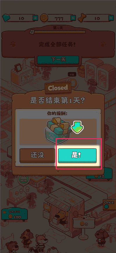 7、最后将所有任务完成后就可以结束这一天的工作并领取报酬啦