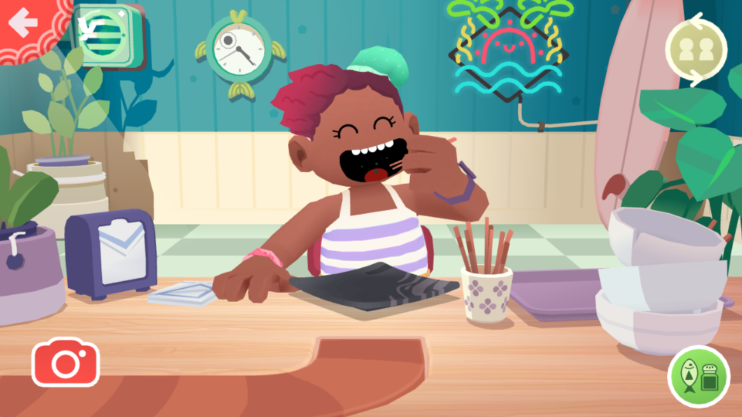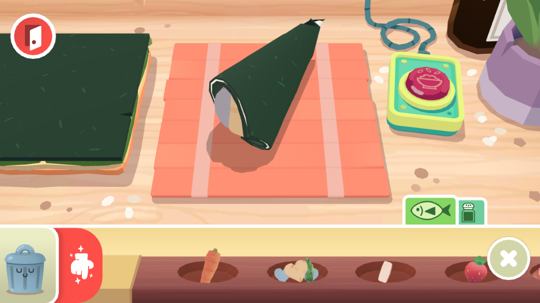 1、问候顾客,然后前往冰箱看看你所有新鲜食材。选择大米、金枪鱼、鳄梨、芦笋、鱿鱼、鲑鱼、辣椒、意大利腊肠、小萝卜、甘蔗(不开玩笑!)、姜、土豆、豆腐、虾等等材料。如果你更愿意选择蔬菜,可以切换成素食设置。