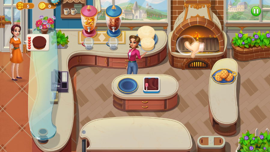 4、接下来就正式进入游戏了,玩家需要根据顾客的订单,给出相应的食物,比如说蛋糕;
