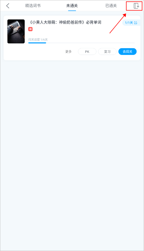 在首页最上方点击“我的词书”进到词书界面点击词书的右上角的“书写”图标即可设置每日闯关数以及单词数啦。