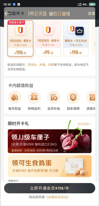 1、承包全年鸡蛋:尊享卡会员免费领12个月专属定制鸡蛋,每月1箱(不支持生鲜配送区域的可任选其他权益商品进行兑换。除One‘s Member可生食鲜鸡蛋20枚外,其它权益商品会不定期做优化调整。)