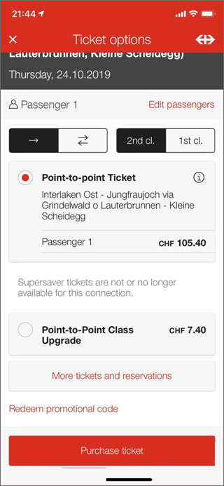 如果你是一个10人以上的团体旅行,你可以在网上购买团体票。您必须使用SwissPass登录才能这样做。