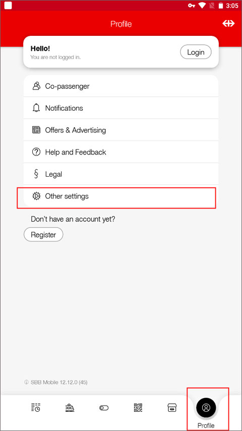 或者,您可以通过SBB移动应用程序在SwissPass上查找有关您的旅行卡的信息。单击应用程序页面顶部菜单栏中的门票和SwissPass tile,然后单击显示旅行卡。