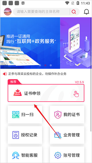 2、或者点击证书申领;
