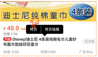 首先在淘宝app中挑选喜欢的商品,长按其标题选择拷贝标题或链接