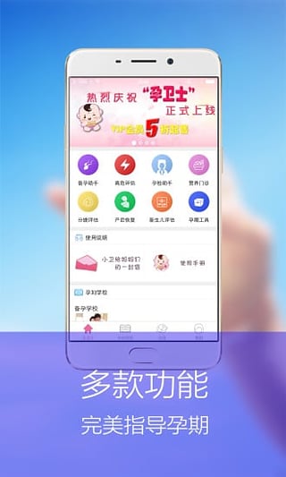 这是一款专门为国内众多准妈妈设计的备孕和生产科学管理平台。该平台特别邀请了来自国内各大权威妇产科医院的专家医生,提供从备孕、孕早期、中期、晚期直到产后恢复的各种详细知识、新生儿相关工具以及云端数据分析处理。它不仅能够全方位地照顾准妈妈们的整个孕期生活,使她们充分了解自身的孕期高风险因素,及时预防,用心呵护自己和宝宝,还建立了专门针对孕妇的交流社区,提供大量的孕期知识、经验和心得,并支持实时的情感交流与分享,让准妈妈们随时随地都能与来自各地的姐妹们互动。