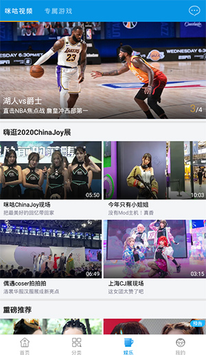 4、在娱乐这里,还可以观看视频,玩游戏;