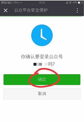 4、扫描成功之后,会跳出一个公众平台安全保护,然后我们点击确定登录;