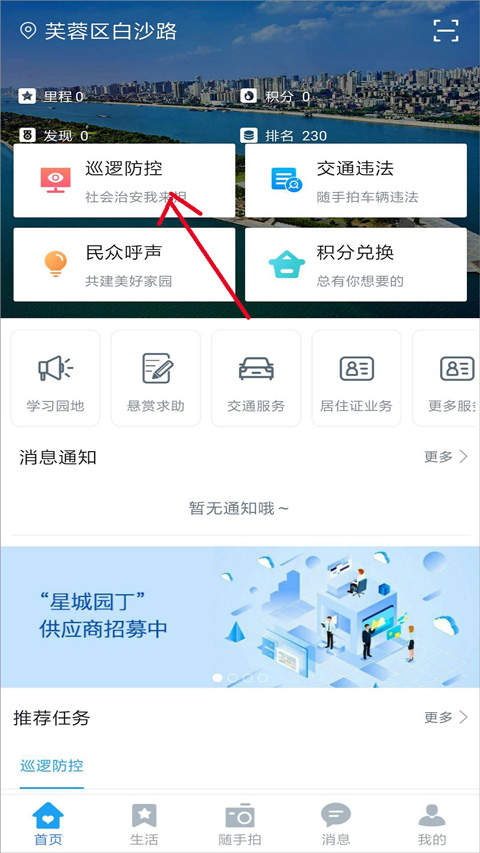 传统的巡逻防控基本都由公安民警实施,但通过星城园丁平台,大家都可以在平台中的“巡逻防控”模块领取任务,完成巡逻,获得积分。