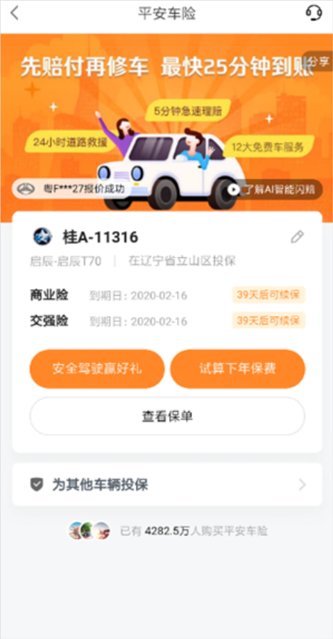 1、买车险:到期线上提醒,轻松一键报价,无需等待;提供智能推荐方案,三步完成办理