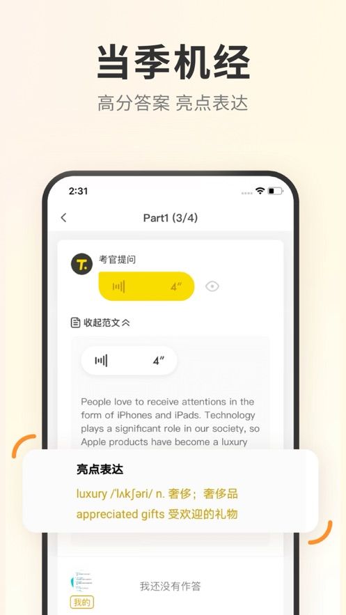 【练】AI口语练习,语音智能识别发音流利度、完整度;剑雅真题、剑雅听力精听、口语/写作机经、听力词汇、全真机经以及预测题。