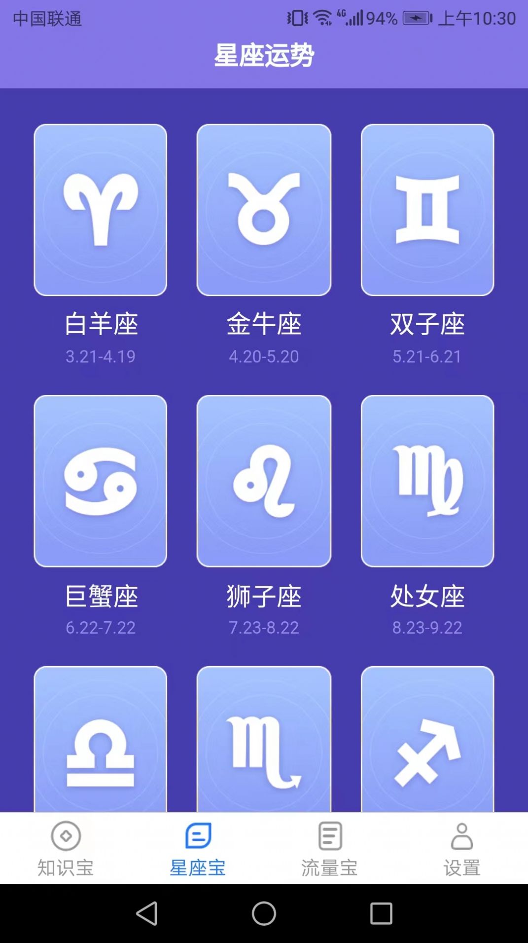 3、提供很多星座方面的知识,还可以查看星座运势等。