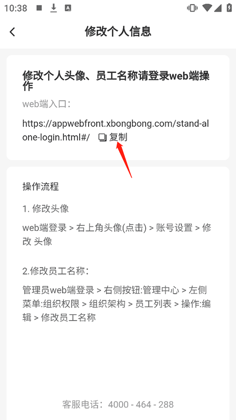 3、然后复制web端入口链接,登录web端修改自己的名字